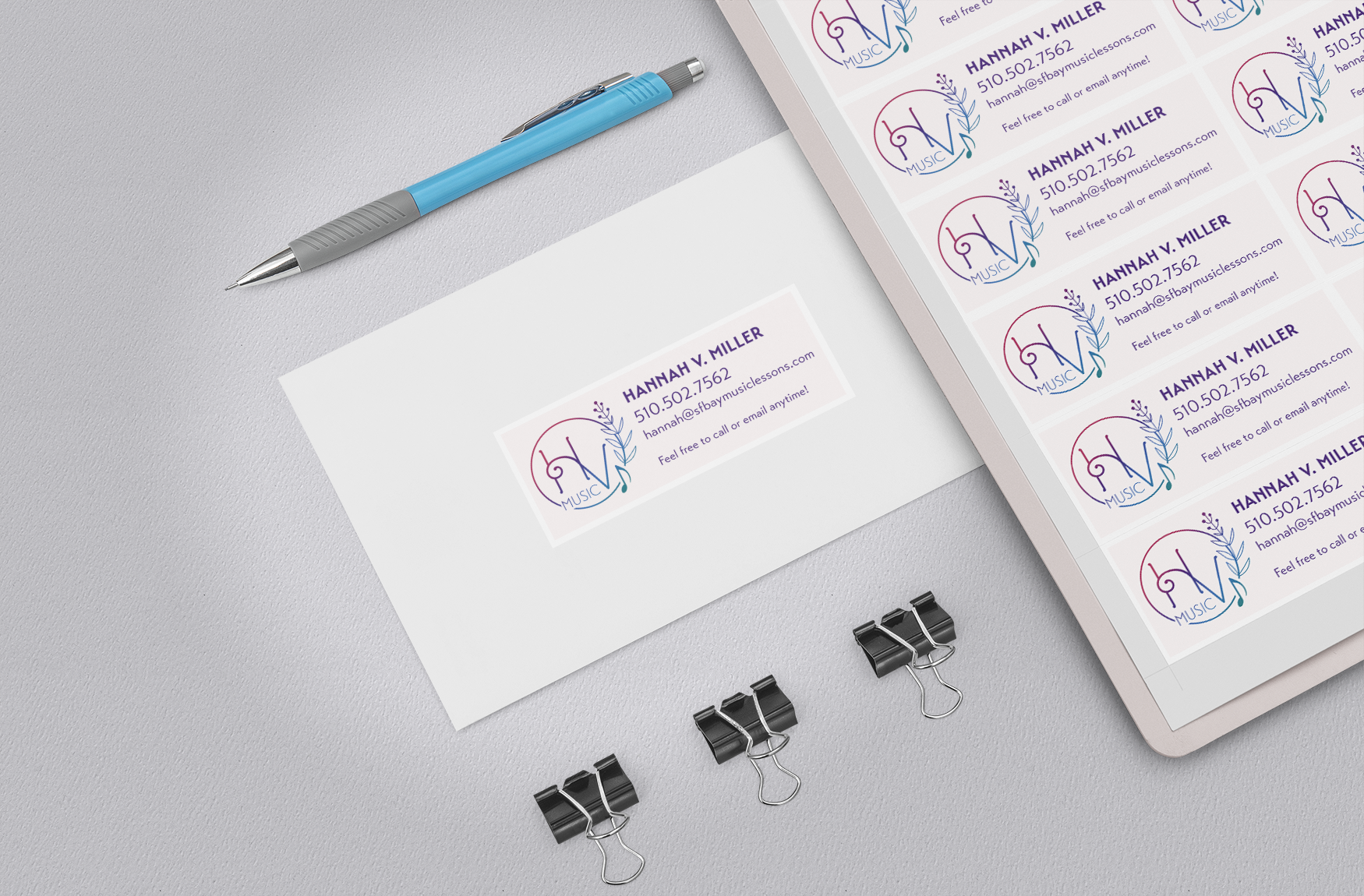 Business card design for music instructor based on branding direction