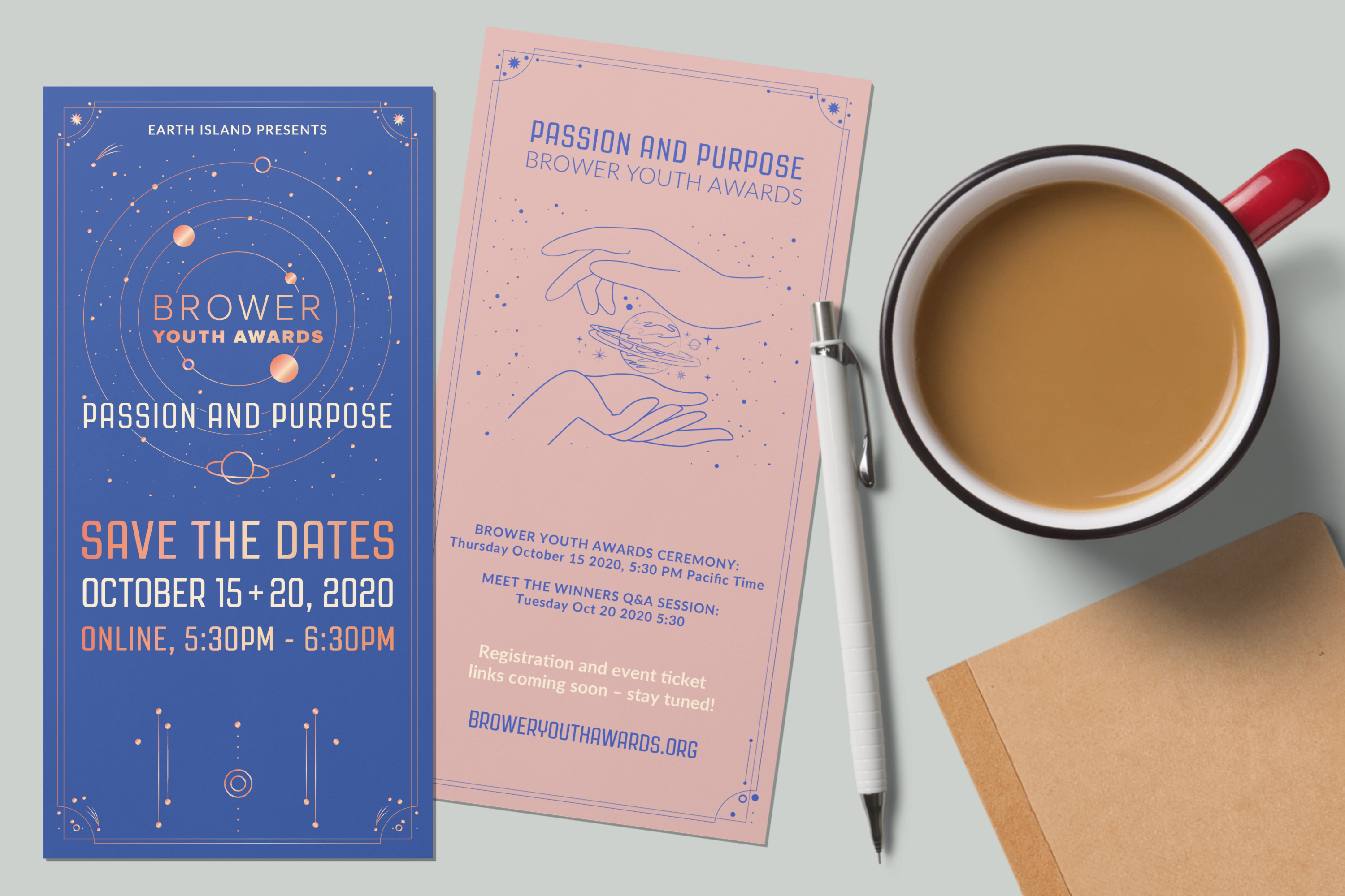 Mockup and design of custom flyer for local awards ceremony. Originally slated to be printed in rose gold foil on the front. Event went digital due to pandemic.