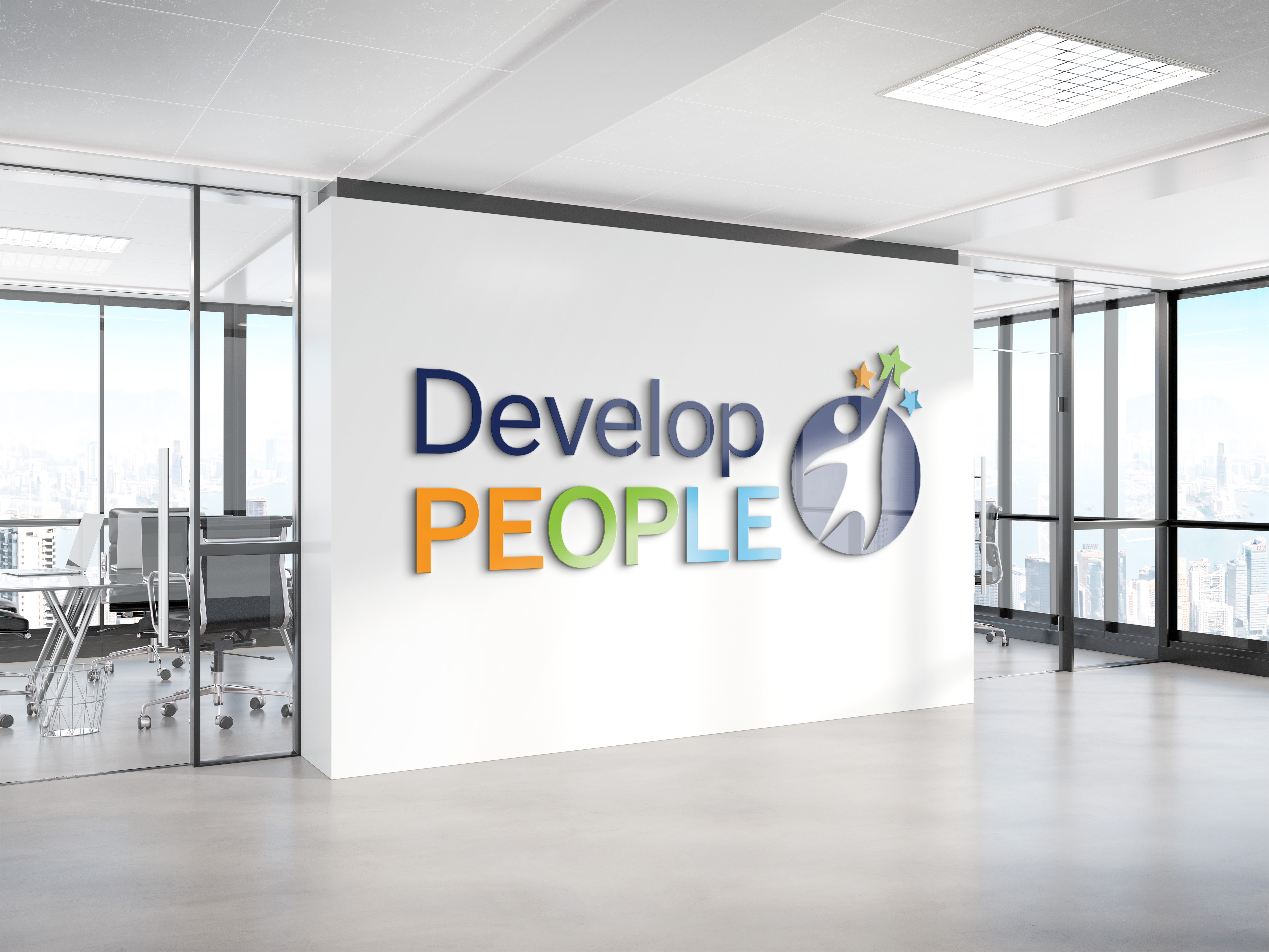 Mockup and design of new logo in proposed office lobby