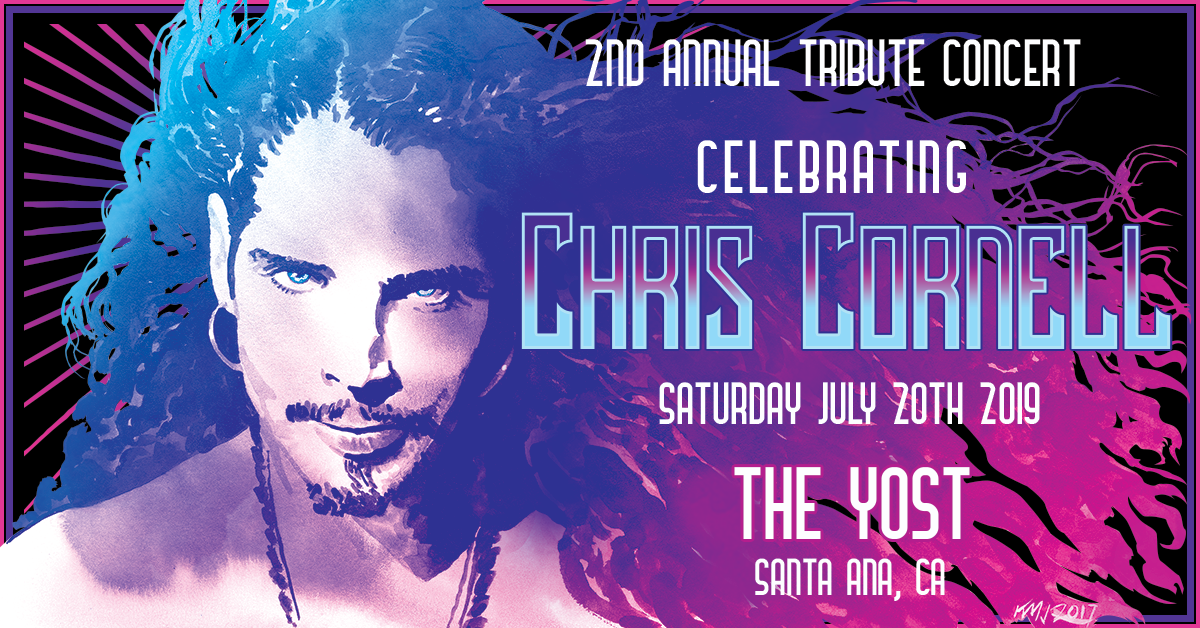 Poster design for benefit concert with customized and modified artwork. Water color artwork of Chris Cornell was provided by artist Ken Meyer Jr.